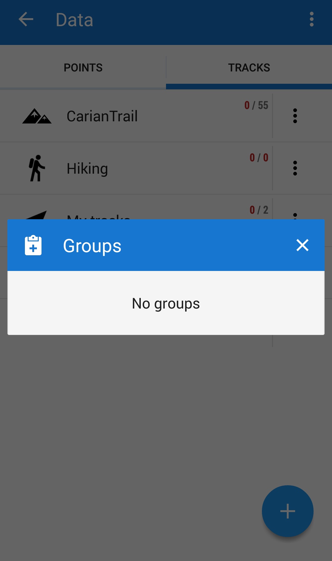 As it's stated in the manual one should tap + in groups dialog to add a group. There is no + in that dialog in my case. Pls see the attached screenshot.