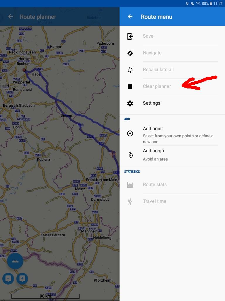 The topic "How to delete navigation route/track" don't help me.