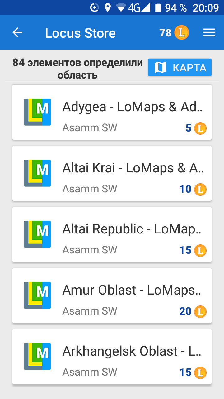 When I try to purchase LoMaps from one phone (Android 7.0, the latest version of Locus Maps Pro) I see in the folder Off-line_maps_downloading/Asia/Russia 84 maps. When I try to do it from another phones (Android 4.4.2 watchphone, the latest version of Locus Maps Pro & Android 2.3.6 Samsung Note) I see 6 maps only.