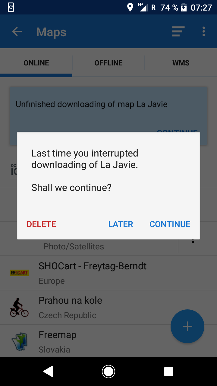 Hi, I try to download a selected area (Level 16, 30mb) from IGN France online map but the download is never complete. Screenshot show the notification. Where the map was stored? How to check that the download was succesfull? Tom