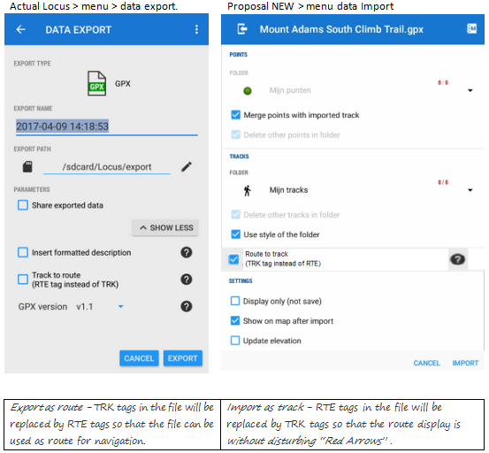What about an automatic system that will convert all really basic (only coordinates + elevation) <rtept> points directly into trackpoints and left only <rtept> with type or any extra information as current waypoints? May this have some unwanted side-effect? Is anyone importing <rte> with just a few route-points and then use these generated waypoints in Locus Map? I do not see real usage, but rather asking.