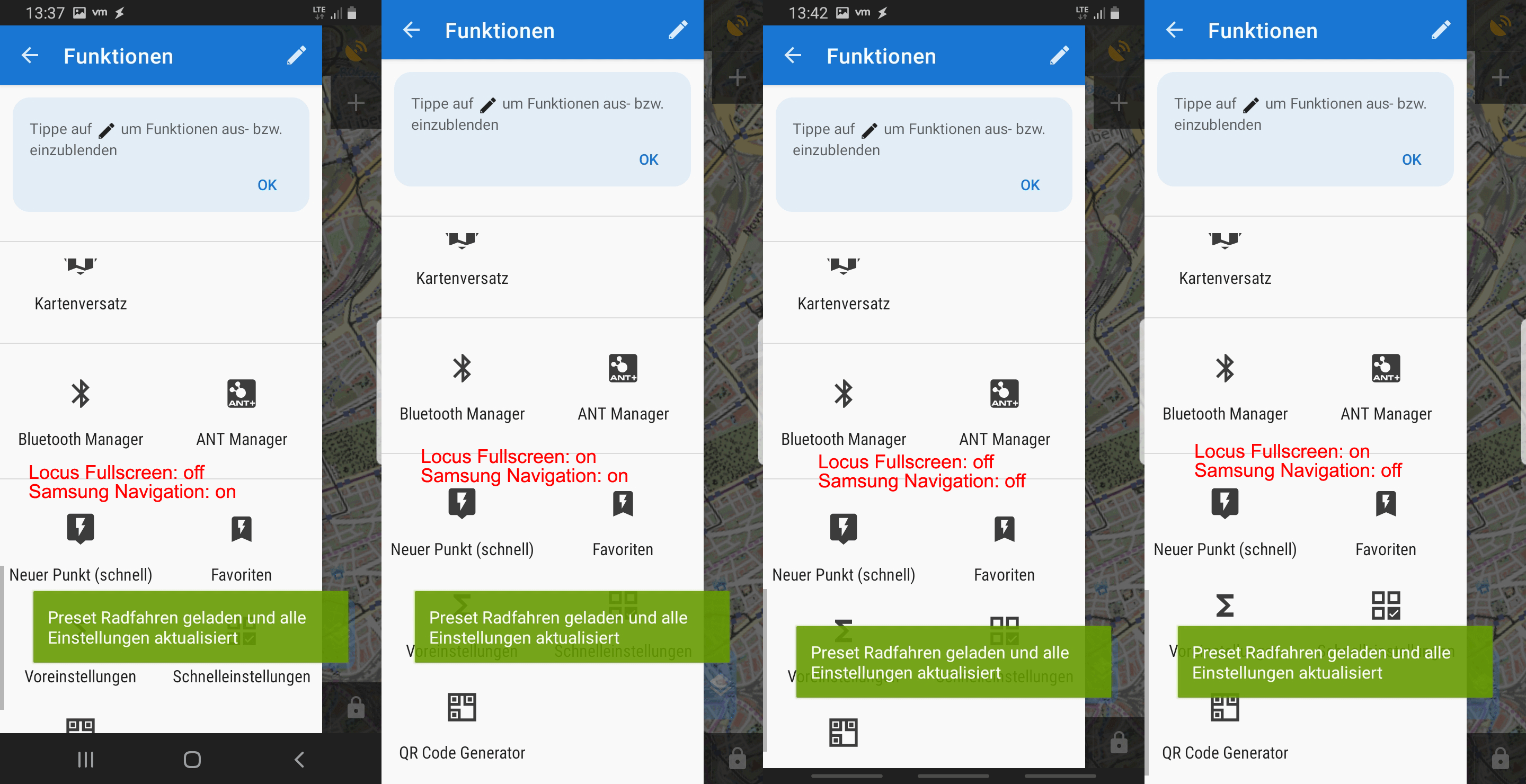 During removal of locus fullscreen from all my presets I did figure out that we get different notifications between applying via touch in menu and applying via action task. I guess the action task does use a different application context.Weird but not a problem, both are working fine if we use locus fullscreen: off. Only with locus fullscreen: on it will get an custom offset.