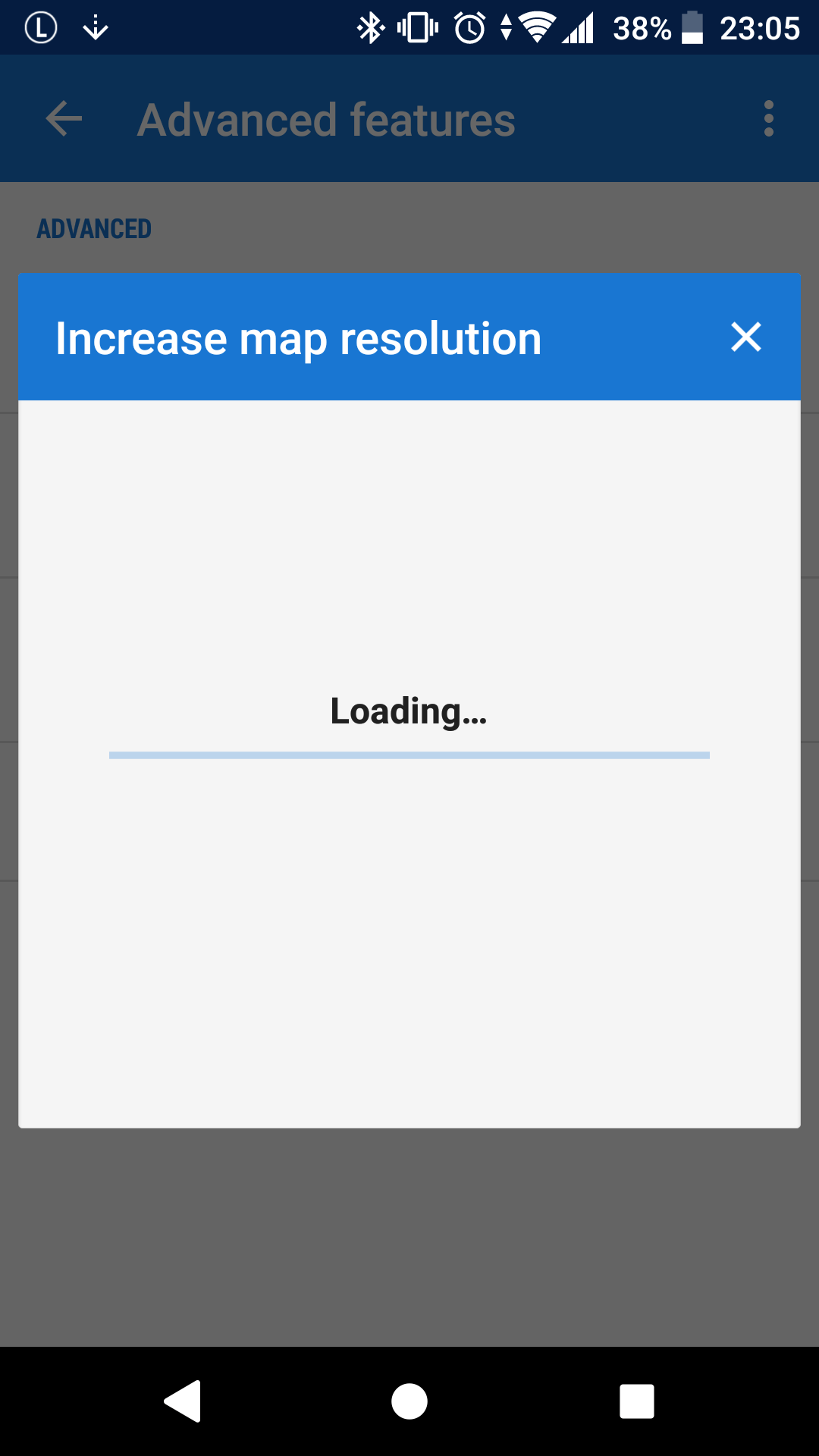 increase map resolution dialog forever loading