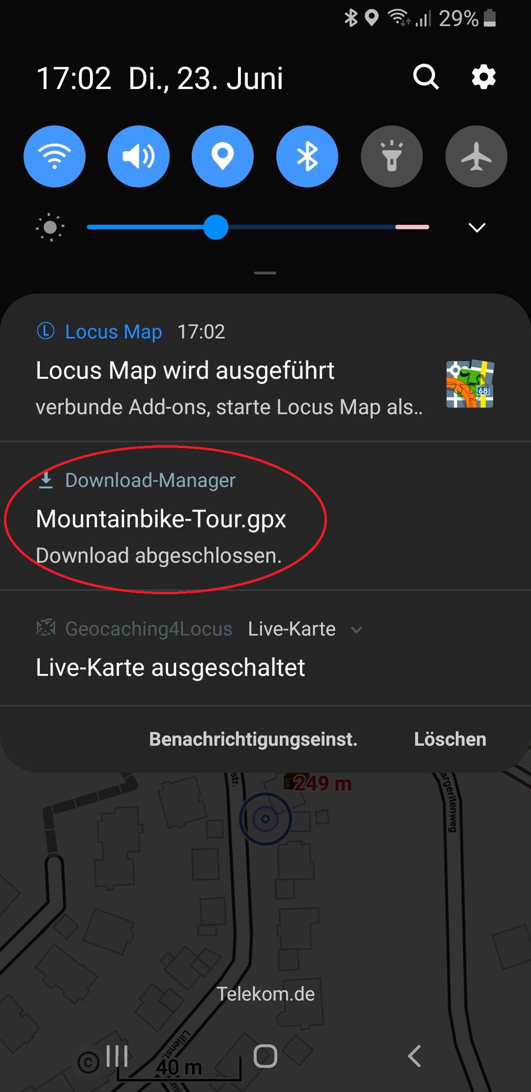 I export the file to Komoot and then Locus shows an error message. But Android shows a download in the notification bar. When I click there the GPX is imported into Locus. This way is better than via GDrive.