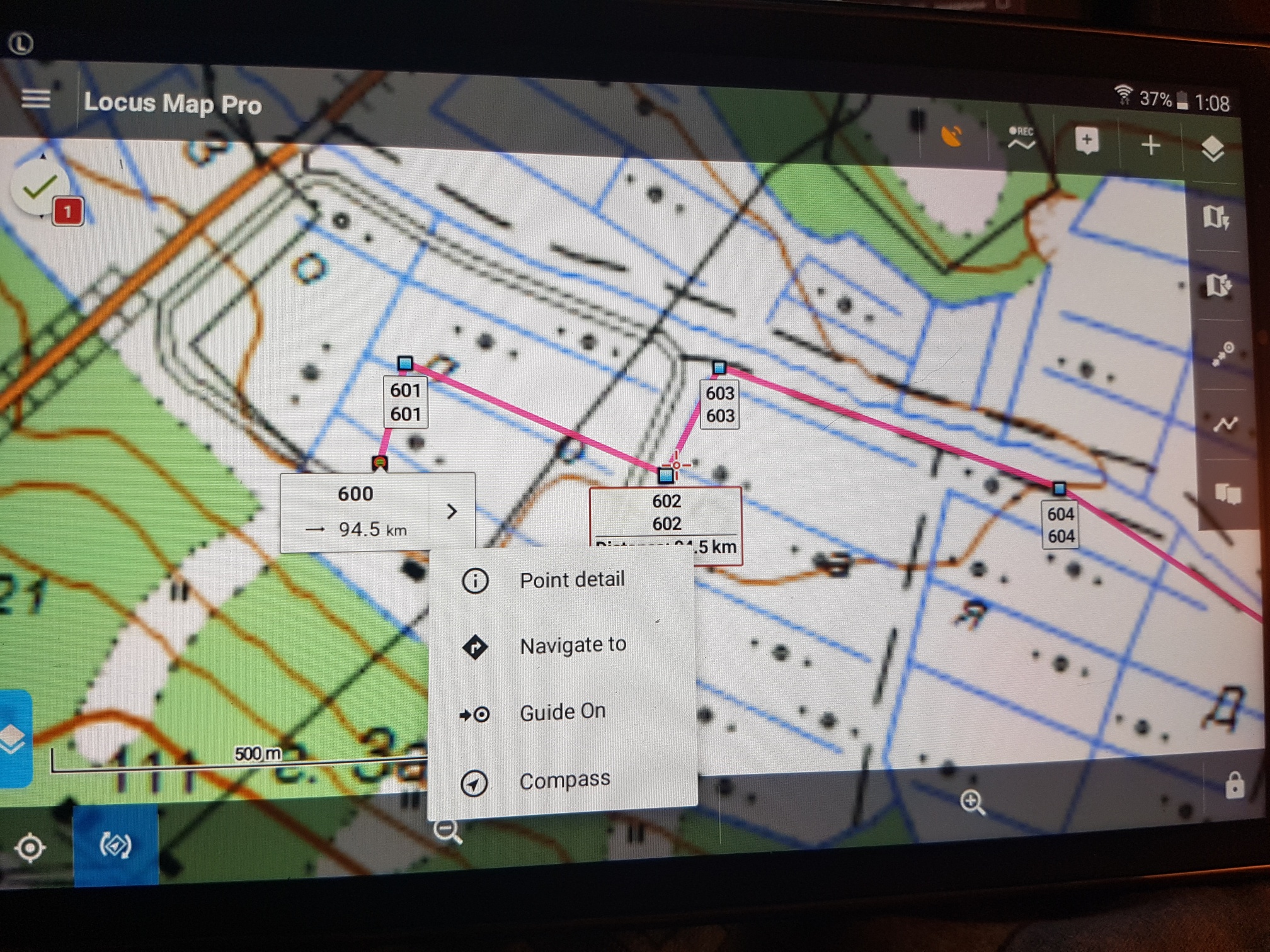 5. In the upper "Guidance panel" you have (of you previously selected right features) distance to the next point and you have name of the next point, if you use "Dashboard" you got the same information there - so in this case dashboard and guidance menu works perfectly and absolutely the same way (if you choose right points when you create custom dashboard, my point you can see in my previous message's screen).