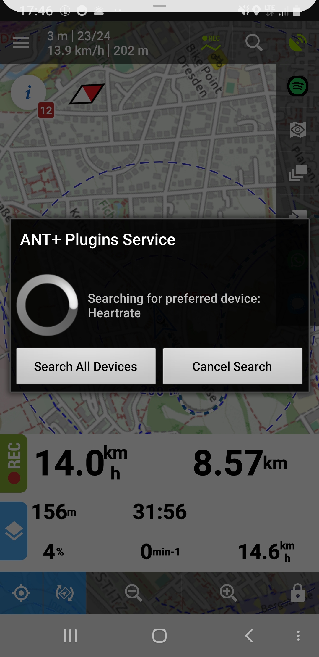 The sensors for speed and rpm are not searched for. LM probably accepts that these sensors are not available. This is not the case with the HR sensor. It is permanently searched for. With the search the window appears (see screenshot) and nothing on the smartphone is usable anymore.