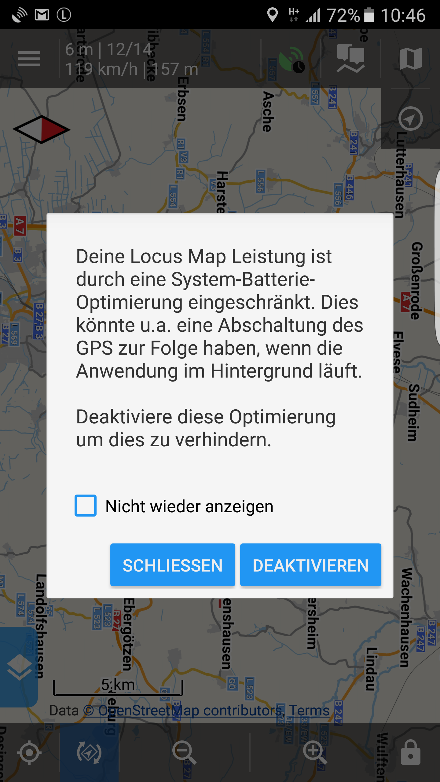 Locus Map Leistung durch System-Batterie-Optimierung eingeschränkt