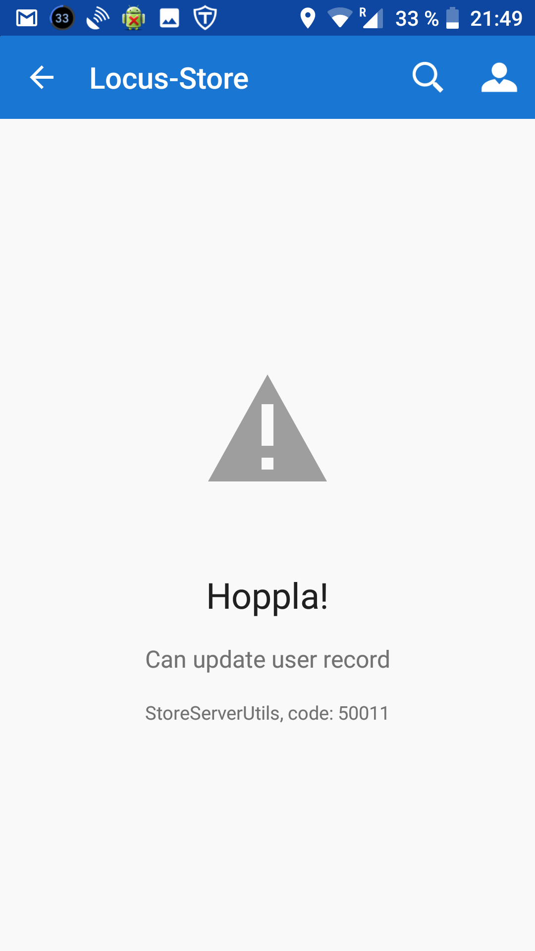 Today I updated Locus Map Pro to version 3.32. Later I opened the store in the app and tried to purchase a new map. But when I tried to log in with my Google account, the login failed with the message: "Hoppla! / T:Google authentication failed / vY$If, code:0". ("Hoppla" is German vor "Oops"). I tried it some more times and also restarted the app without any success.