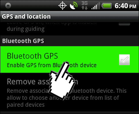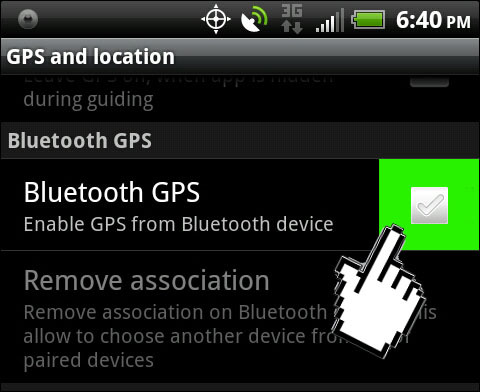 when you`re using internal gps, you should see text on button "GPS On/Off ". When you use bluetooth GPS, you`ll now see "BT GPS On/Off"