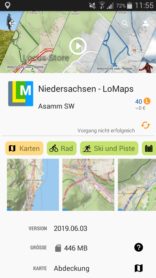 Got the download of the small map now. Will try now Italy and then external data, which at the moment does not work as well. I bought a map from merkator shop of the lake garda...now i can't load. will come back on this.