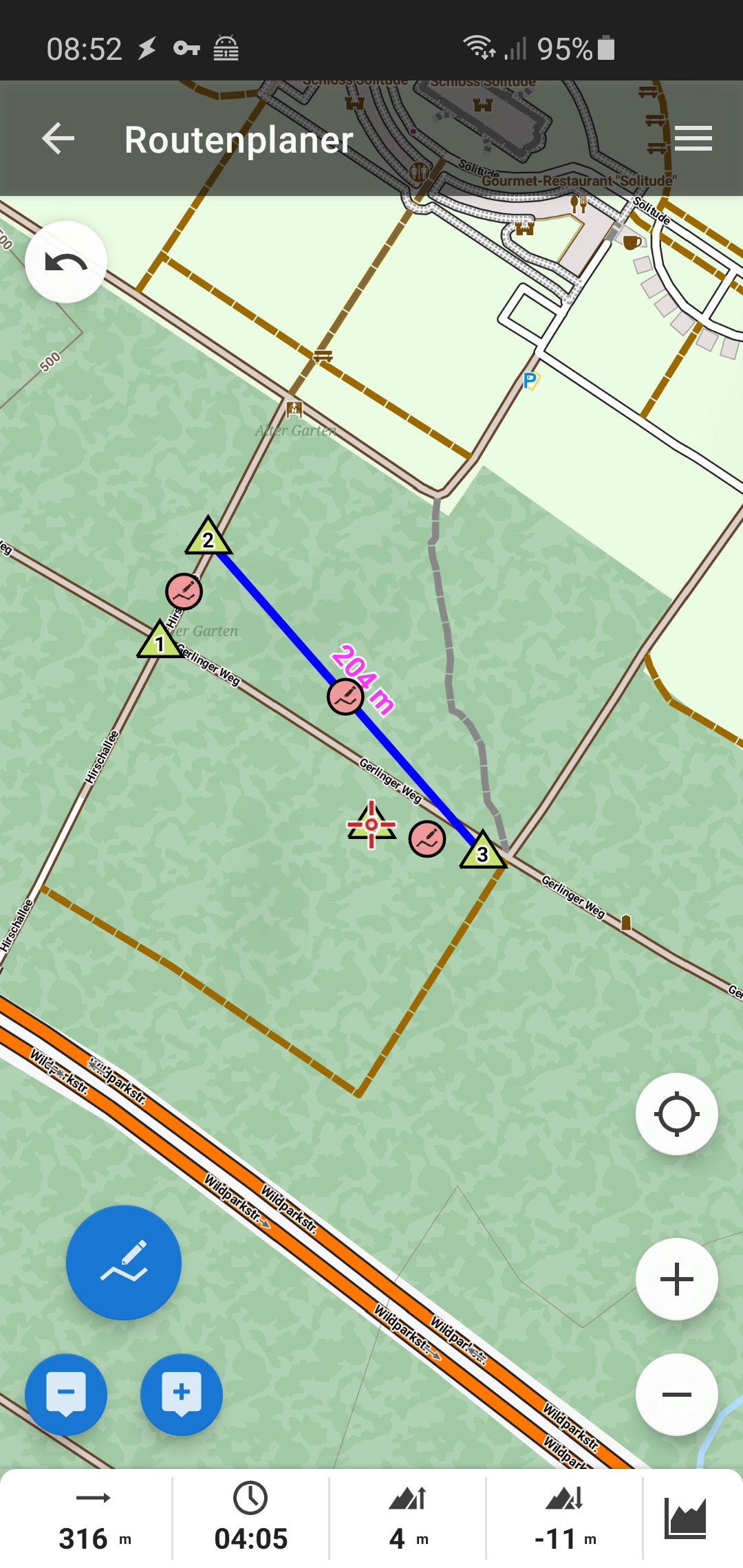 the route in manual mode is divided into interpolated segments due to calculation of its elevation profile. These segments number can be reduced in Locus expert settings (https://docs.locusmap.eu/doku.php?id=manual:advanced:customization:config#expert_settings). What problems do the segments cause?