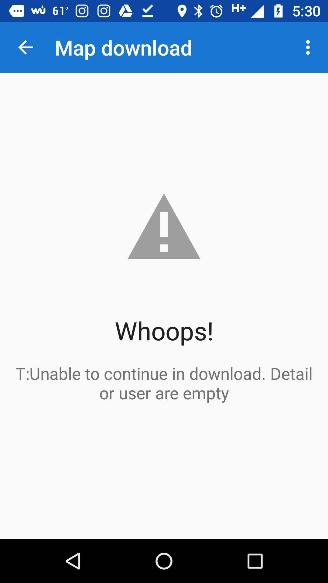 I tried to download maps for offline use and after selecting the area and detail I received an error message reading: "unable to download. Detail or user are empty". How do I remedy this?
