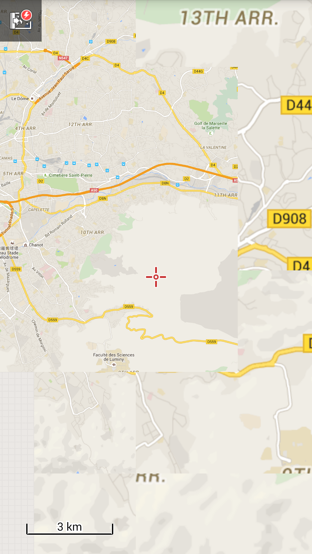 4. I kept zooming in, but the maximum zoom level was no higher than 13. I thought when I zoomed in to levels higher than 13, Locus would automatically shift to the Paris map to display the higher zoom level maps.
