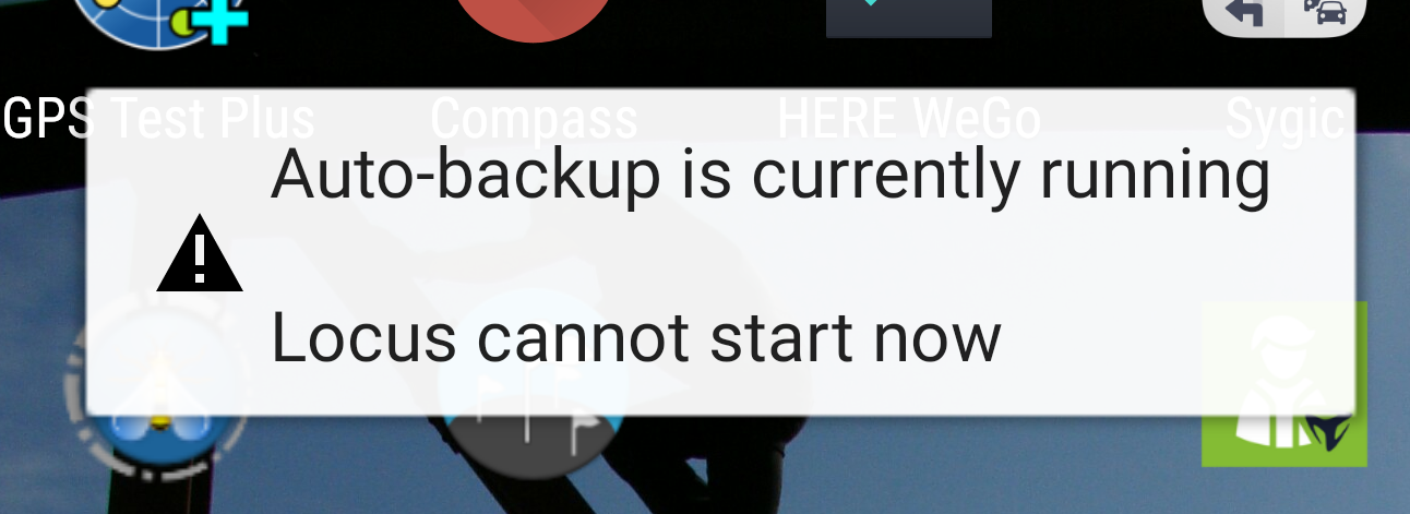 when I switch my Smartphone on the autobackup starts, because of my settings, every two days. That's a great feature. When I now want to start locus I get the message as seen on the screenshot.