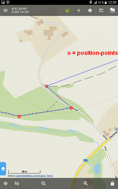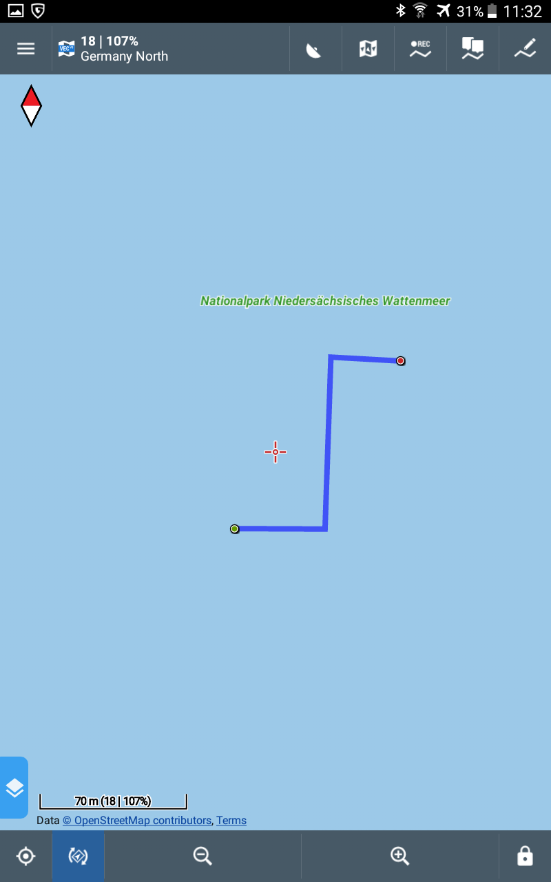 First screenshot only with blue Line, caused of the imported file "Norbert-test.gpx".