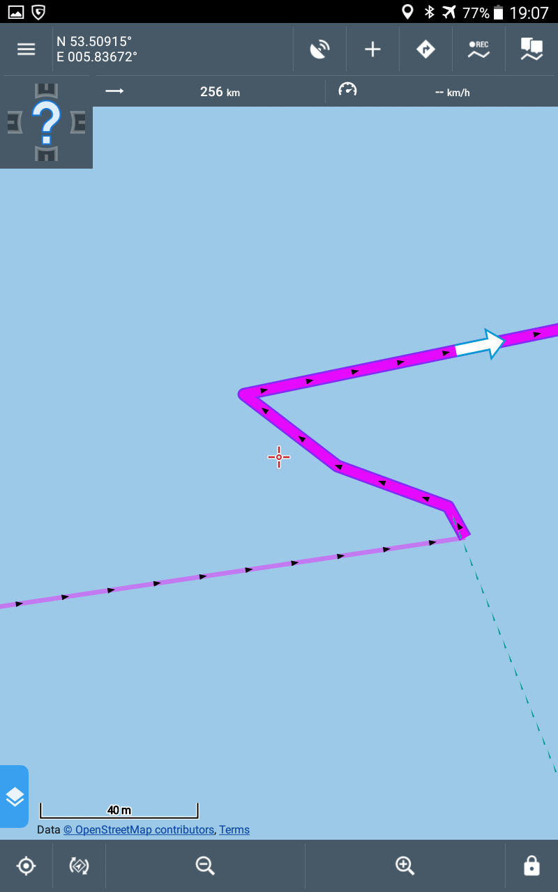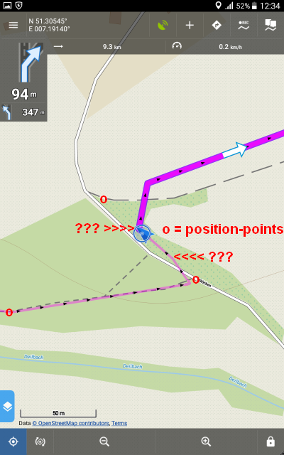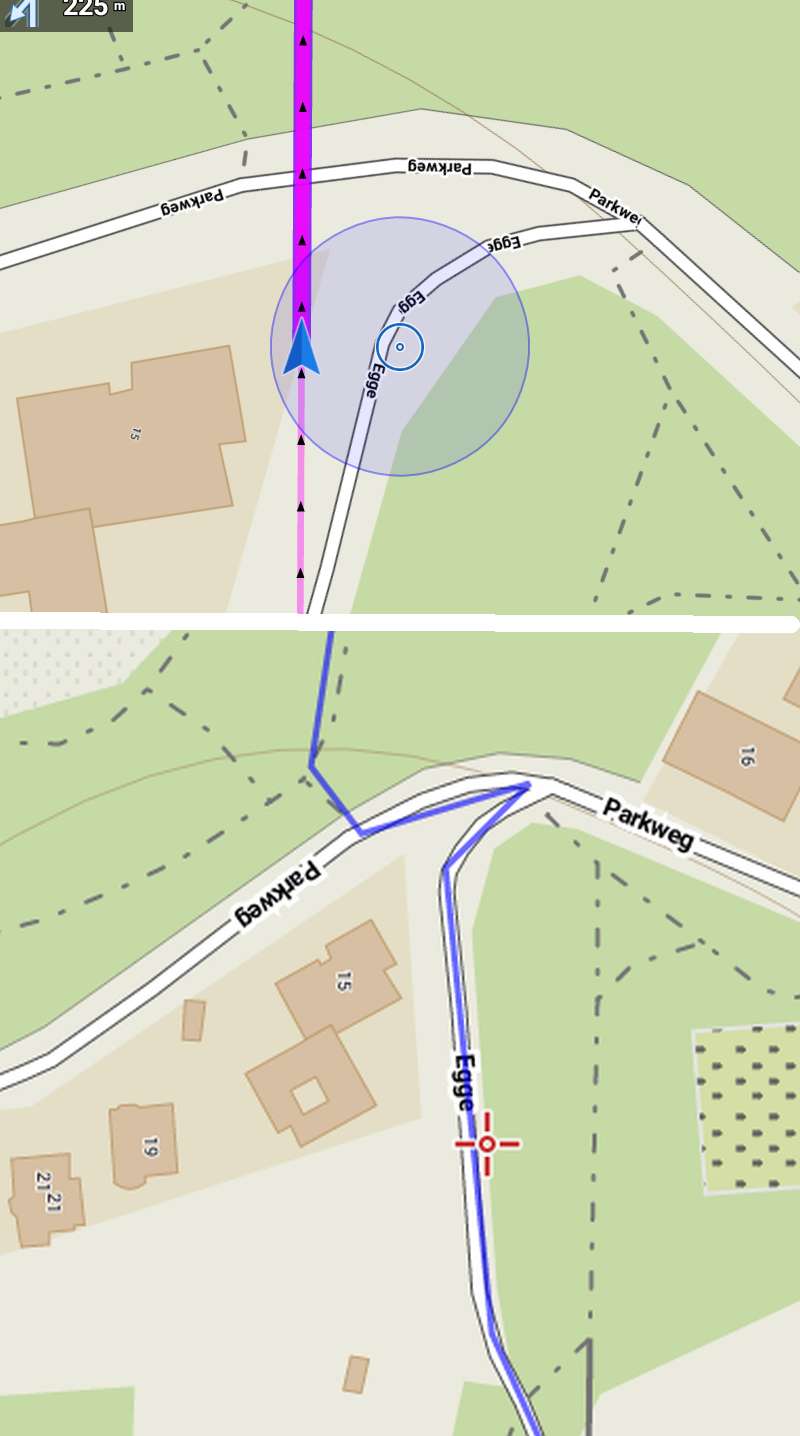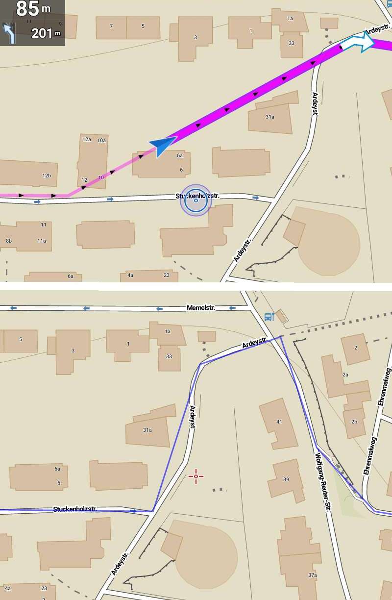 Second, I switch on the "Navigation" in Locus. You see the wide purple line.