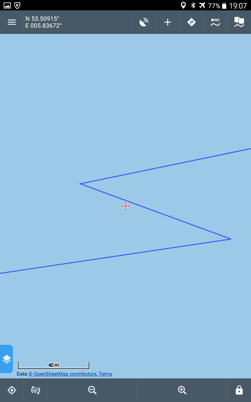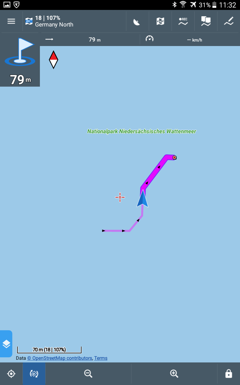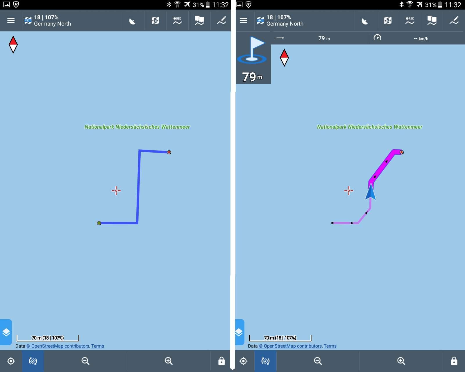 Second, I switch on the "Navigation" in Locus. You see the wide purple line.