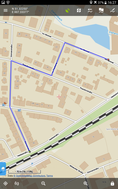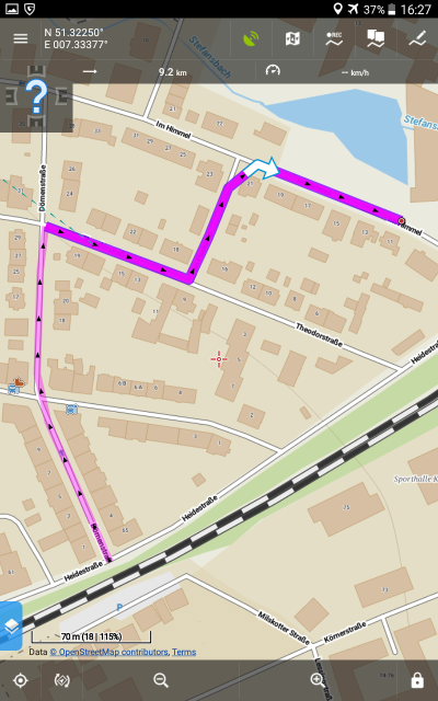 Navigation by actual Locus Pro 3.25.1 (Speedindication: 18kmh.)