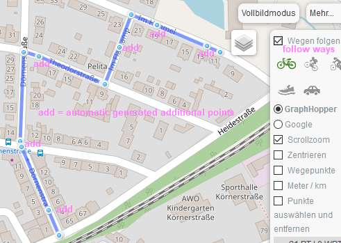 So simply, in case of selected "small number of commands", Locus Map generate new track based on source track with points exactly 30 metres between. And what you see is the result. What may happen in worst case, is around 15 m error, which I consider as really minor problem. Ok?