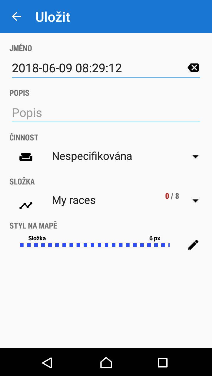 Pri pokusu o ulozeni projete trasy ji nejde ulozit, chybi tlacitko ulozit. A po otoceni displeje na teto obrazovce ulozeni trasy dojde k padu aplikace.