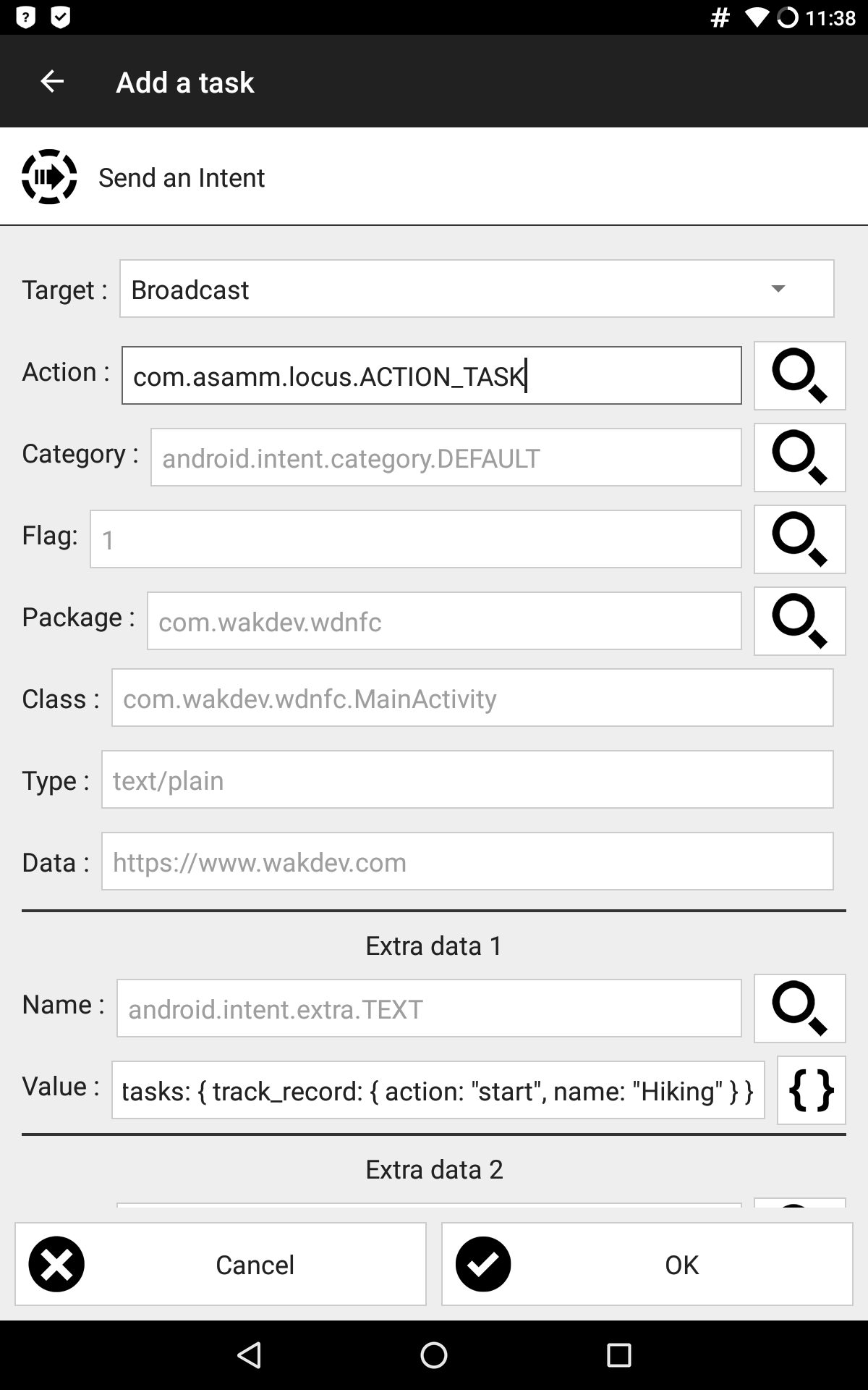 I'm trying to trigger an action in Locus from NFC Tools PRO using a broadcast intent as explained here: https://github.com/asamm/locus-api/wiki/Action-tasks-(Broadcasts)#samples