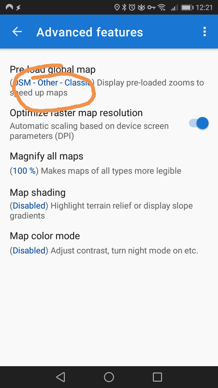 Ah yes, I didn't quite follow all of your earlier instructions to download and install the OpenAndroMaps. Now that I have (over 2GB - ouch!) I am indeed getting the option to use that map under 'Personal Maps' (Eigene Karten) in the 'Pre-load global map' window. I think we can just about call this one 'solved'.