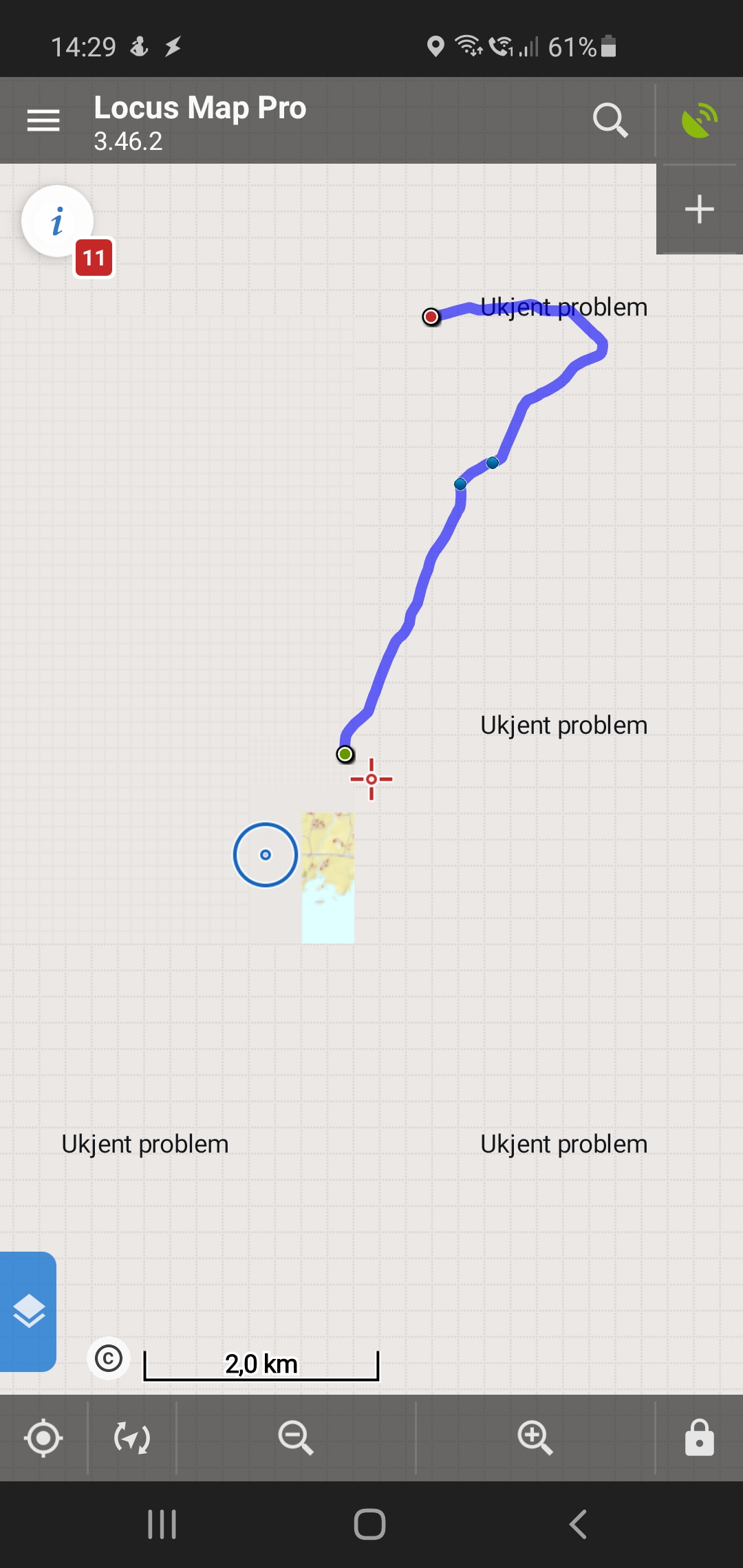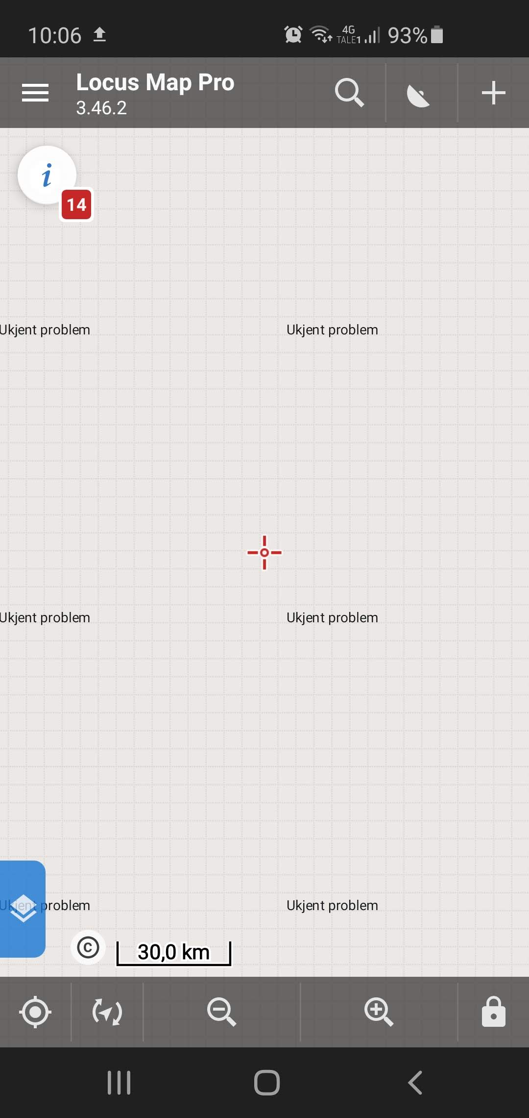 Since a couple of months, the app will not load the Startkart.No – Topo map. As shown in attached scree shot, only a grey grid is displayed with the text “Ukjent problem” (Unknown problem).