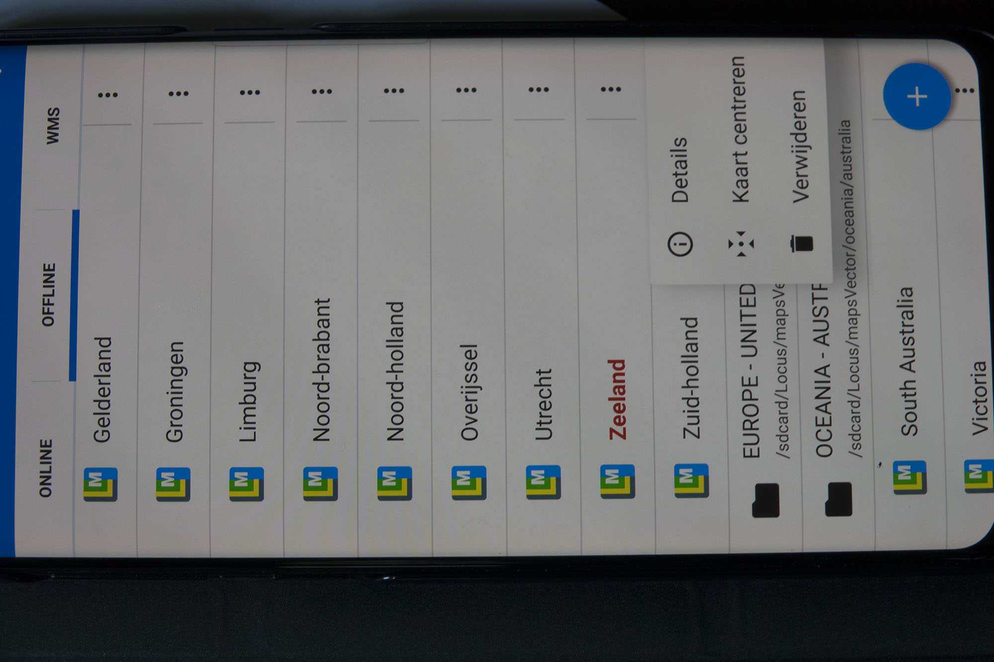 When I open Locus I see Belgium, France and the Netherlands without Zeeland, When I go to maps, select Zeeland and center map I can see only Zeeland. If I want to see Belgium again I go to map select Belgium, center and see everything without Zeeland.
