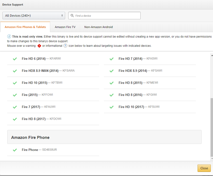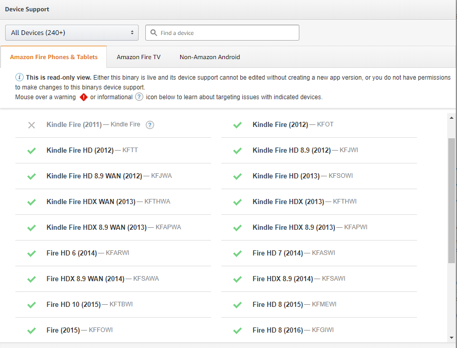 There is only one unsupported device - Fire tablet from 2011. Please, see an attach. Is this your wife's tablet?