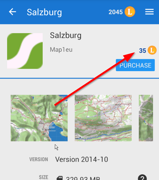I'm sorry but I'm not sure if I can understand: "For each mao"? Please open Menu > Locus store > navigate to the region you are interested in. Find item you want to purchase and price is defined in top right panel in. Please see attached image.