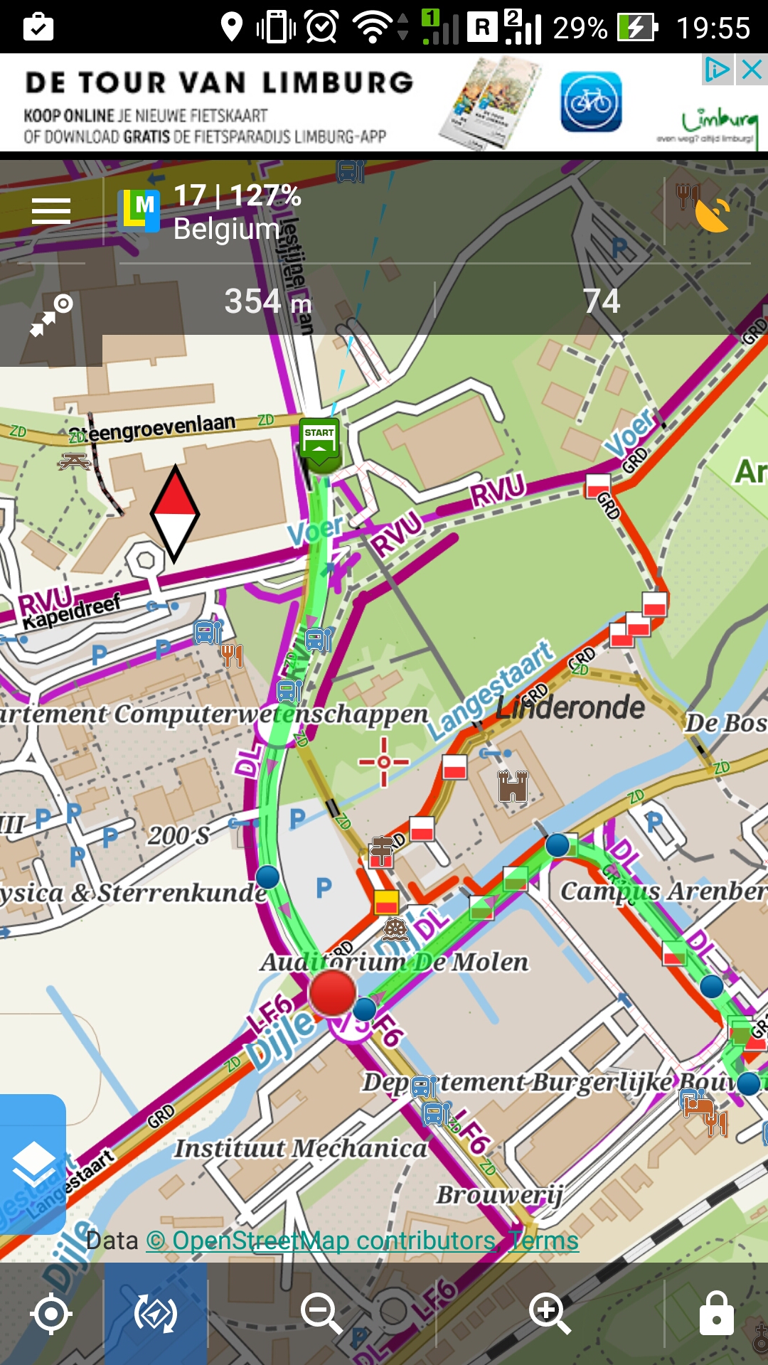 I'm Matteo, I live in Belgium and I always use for my bike rides locus with gpx files generated from here http://www.fietsnet.be.