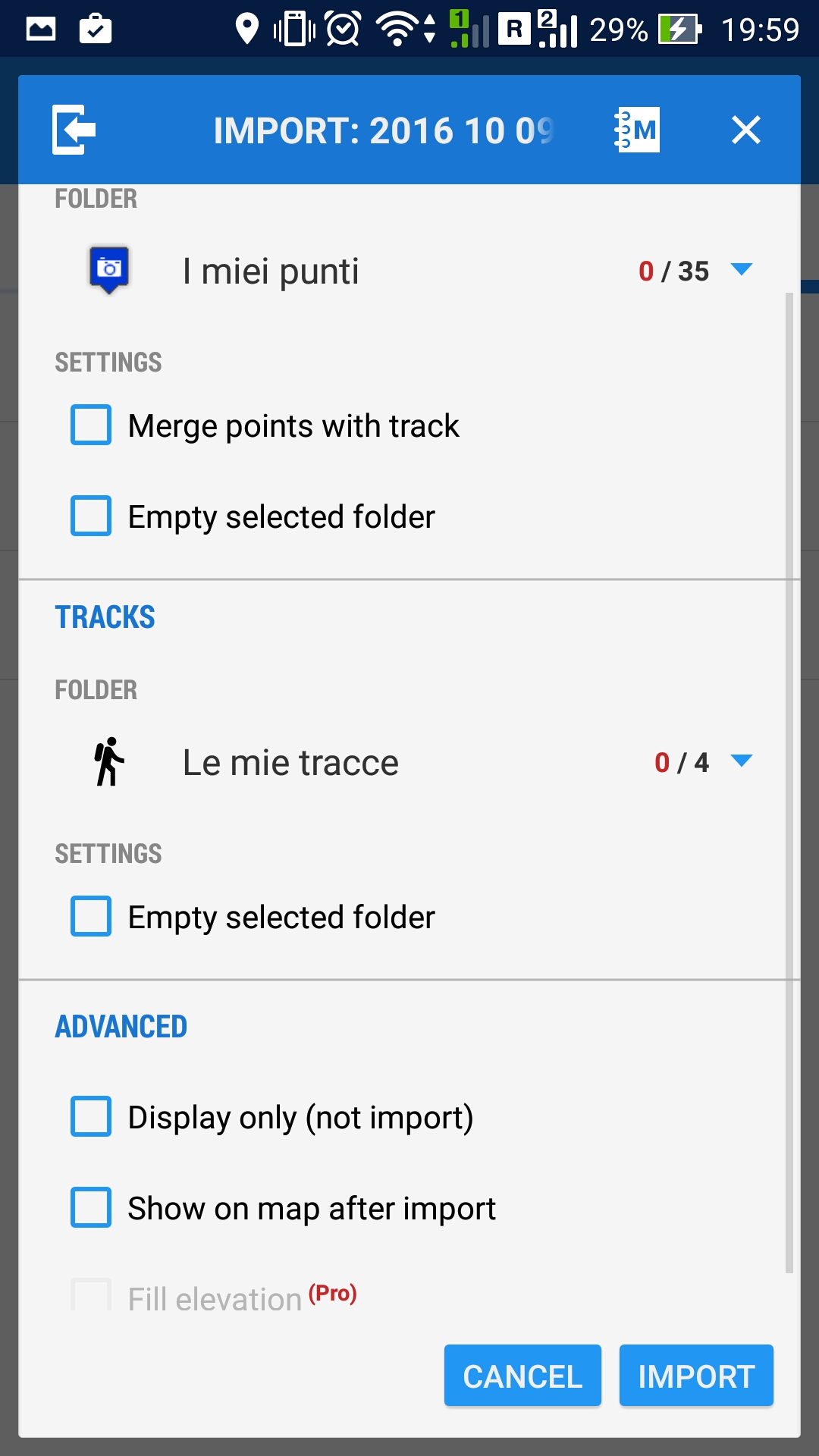 I imported from items, I merged, then I started the guidance using the options that you suggested, even if on my Locus the names are slightly different.