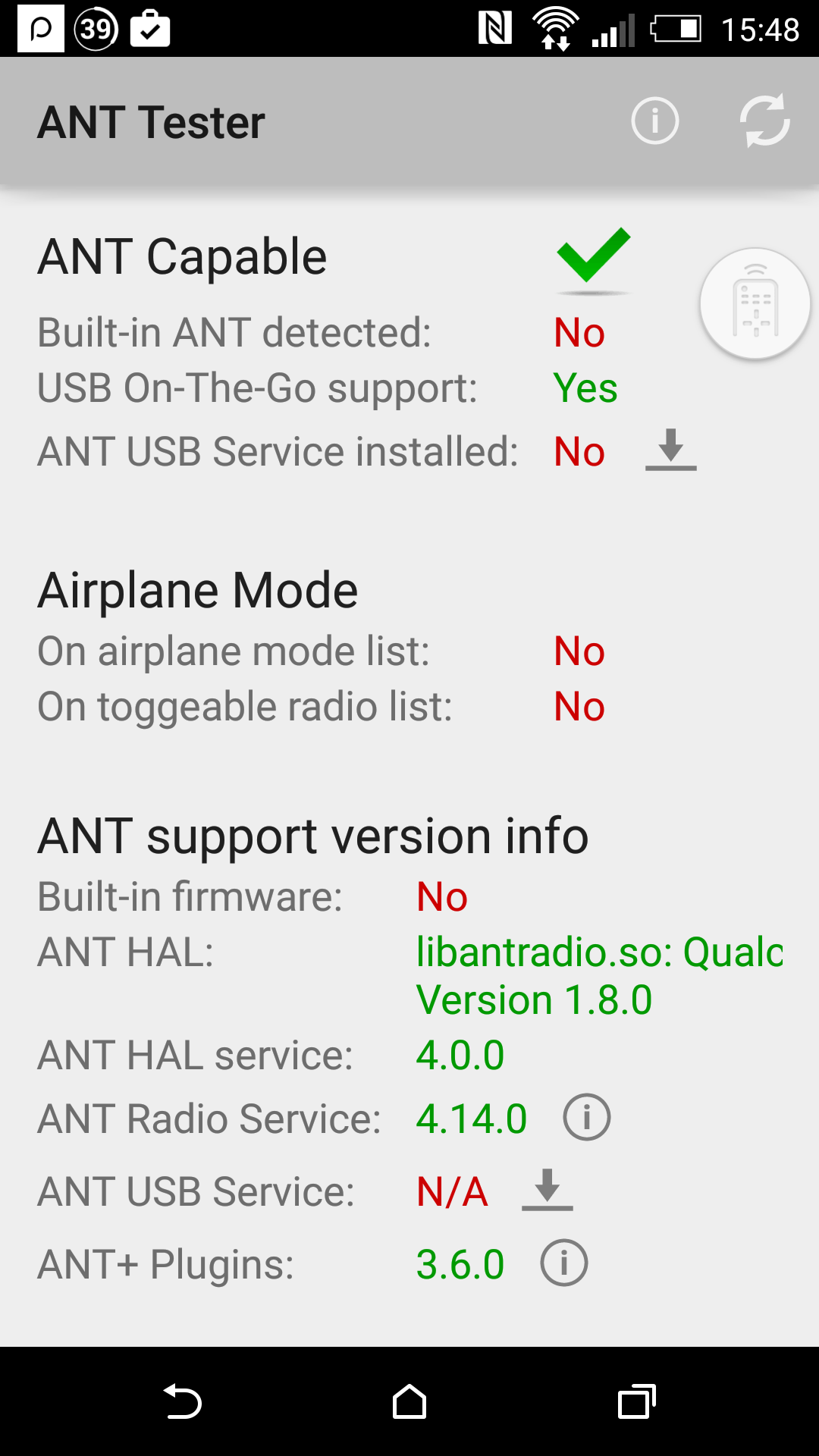 Nemohu v Locusu bohužel připojit HRM pás Holux. Ten mi funguje se zařízeními Holux i Sigma, při pokusu připojit ho v telefonu v aplikaci se okamžitě objeví "Proces přerušen". Mám naistalován ANT Radio Service i ANT+ Plugins Service. Na internetu jsem našel, že problém by mohl být v typu mého telefonu - HTC One M8, ANT+ prý není aktivován. Přikládám výstup z aplikace ANT Tester, pokud by to pomohlo k odstranění příčiny problému.