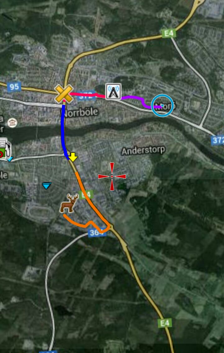 If I follow the orange track (zoom 15) on the map and I come to the blue track it will not light up.
