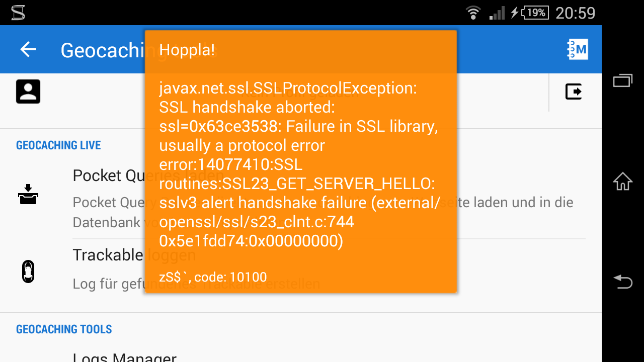 When I try to down load a geocaching query I get an error message ( see attached screenshot)