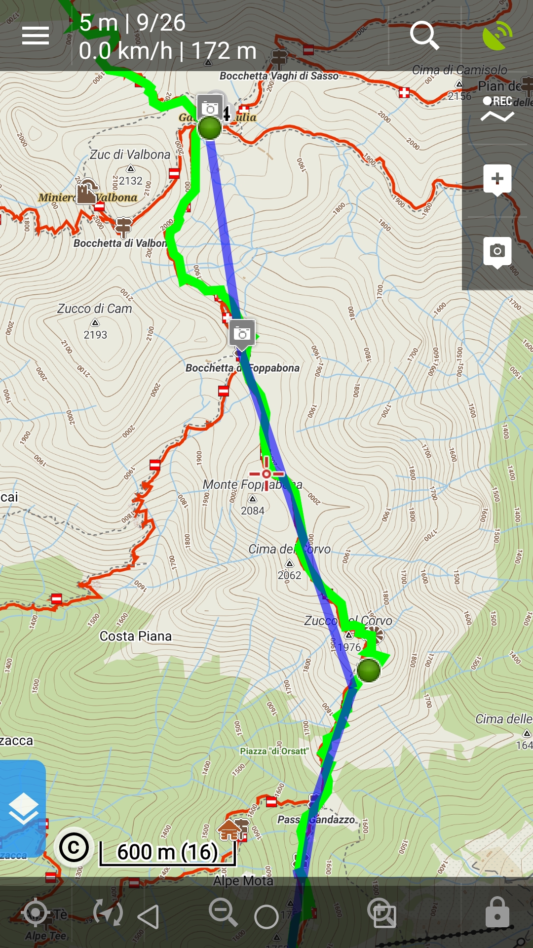 The recorded track is just a straight line. It doesn't follow the trail