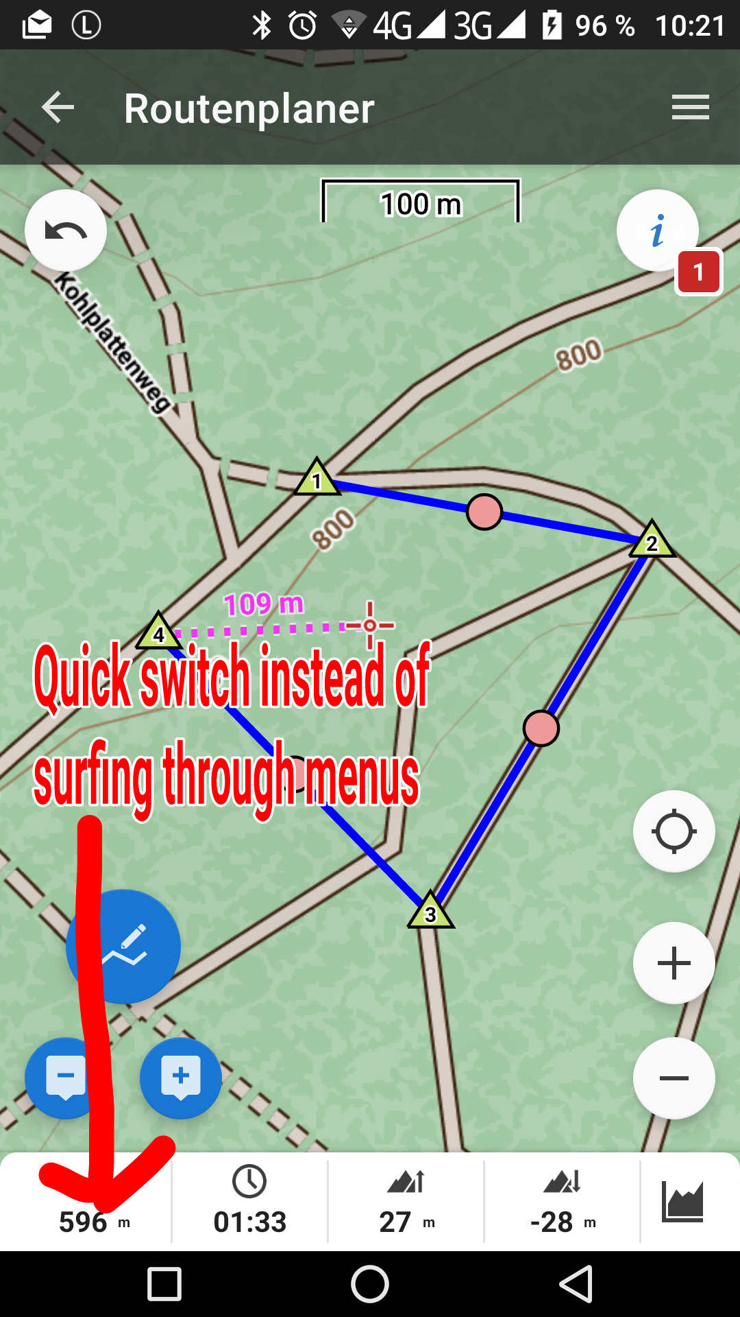 Route planer: Quick switch between distance and area measurement