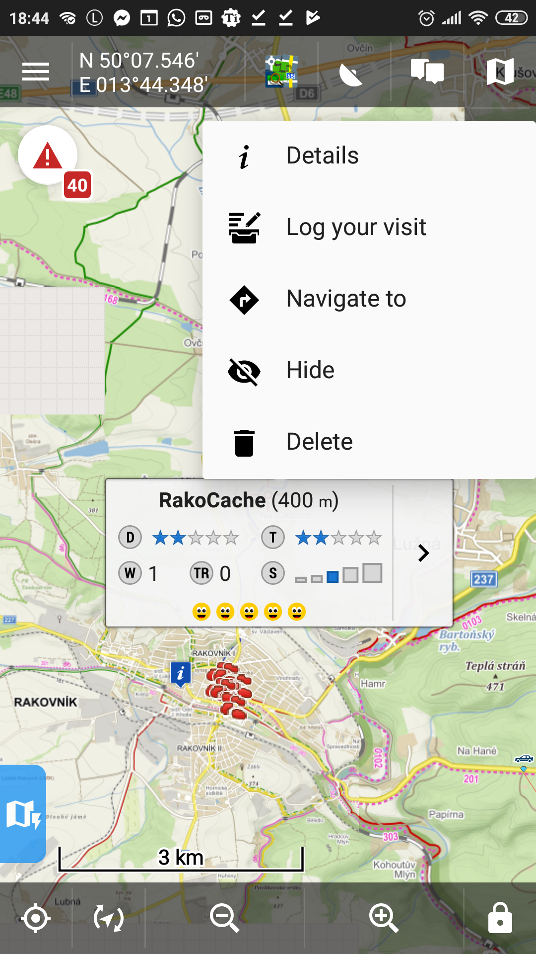 Route planner - detail of point/geocaches
