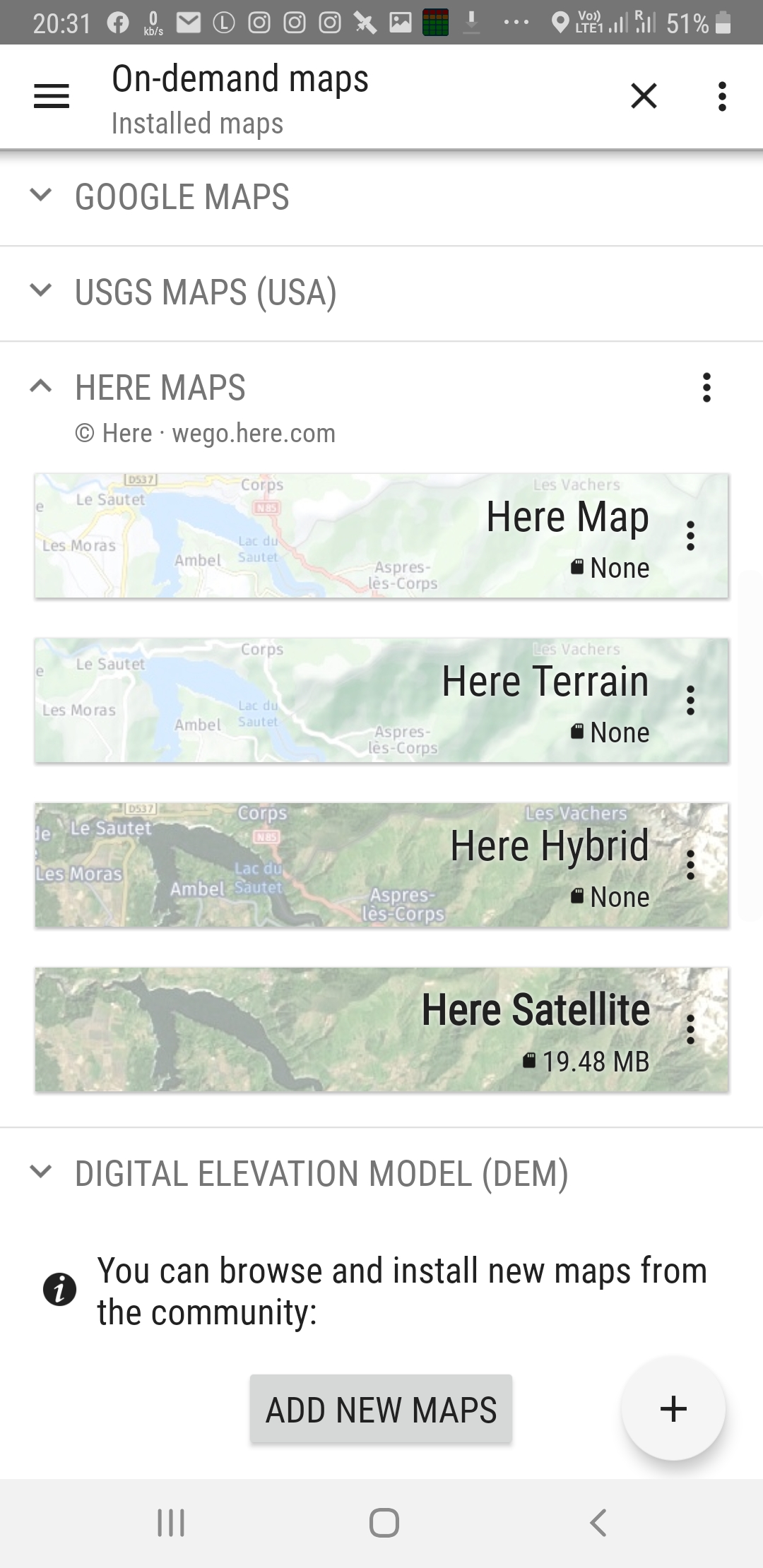 I have come to recently trying to switch from AlpineQuest to Locus. Locus of course seems far, far superior in terms of operation, but for content, it appears I cannot find any way to download satellite tiles. AlpineQuest has a really great facility for layering maps, and also adding new maps for display from many sources. One of the free sources is from HERE maps, which gives the following four map types: Roads, Terrain, Hybrid, Satellite. It seems that I can zoom all the way in to better than 1:5000K. In fact, still looks very clear at 1:1K actually,..