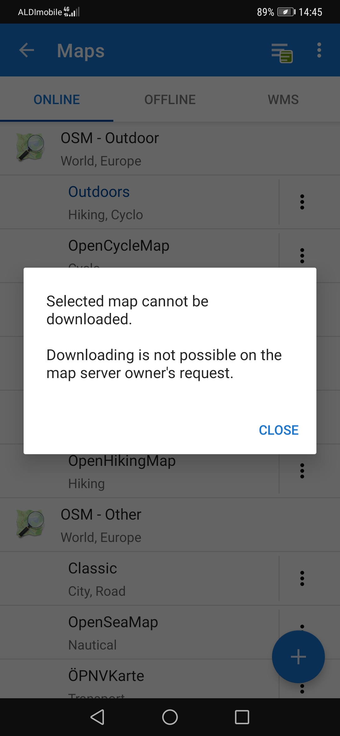 Getting this error when downloading OSM Outdoor maps: "Selected map cannot be downloaded. Downloading is not possible on the map servers owners request".