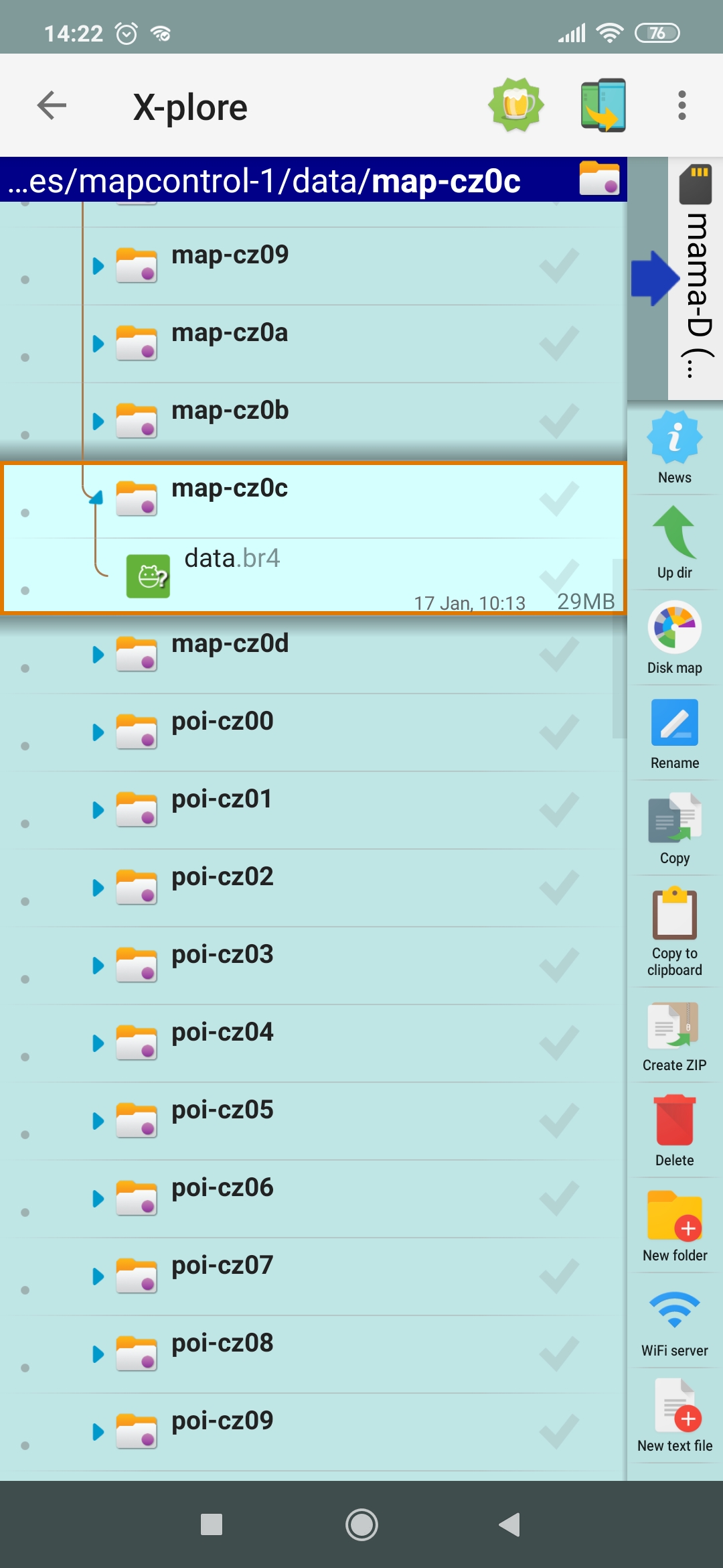 When you download offline data for mapy.cz application, it saves these data on your device in .br4 format. Maps and Poi, each region in separate file.