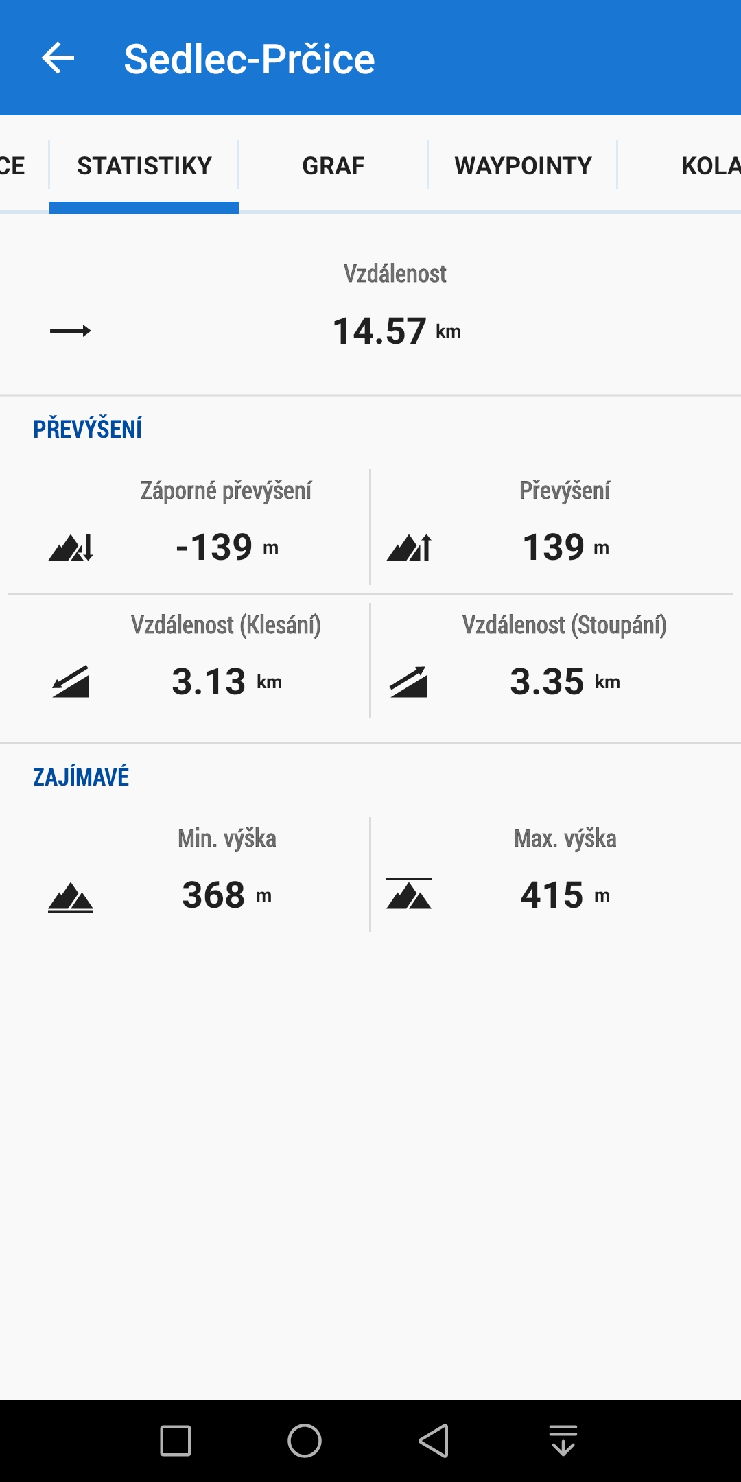 Statistika v náhledu trasy