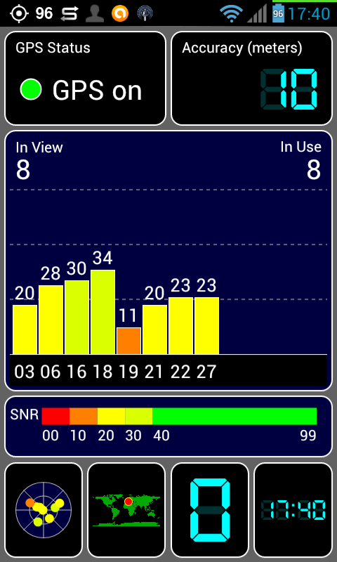 stebu: The GPS screen showed several (9?) satellites, but all were bunched up at the top of the 2D display.