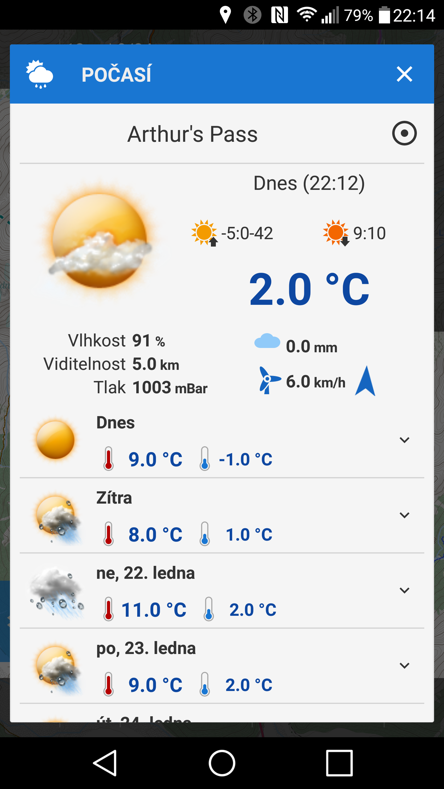 funny time -5:0:-42 indeed :). Locus display sunrise/sunset times in your current timezone, but values are in this case for location "Arthur's pass" defined at top of screen. So I believe that values are correct, they are just not in timezone of "Arthur's pass" , but in your own current timezone.