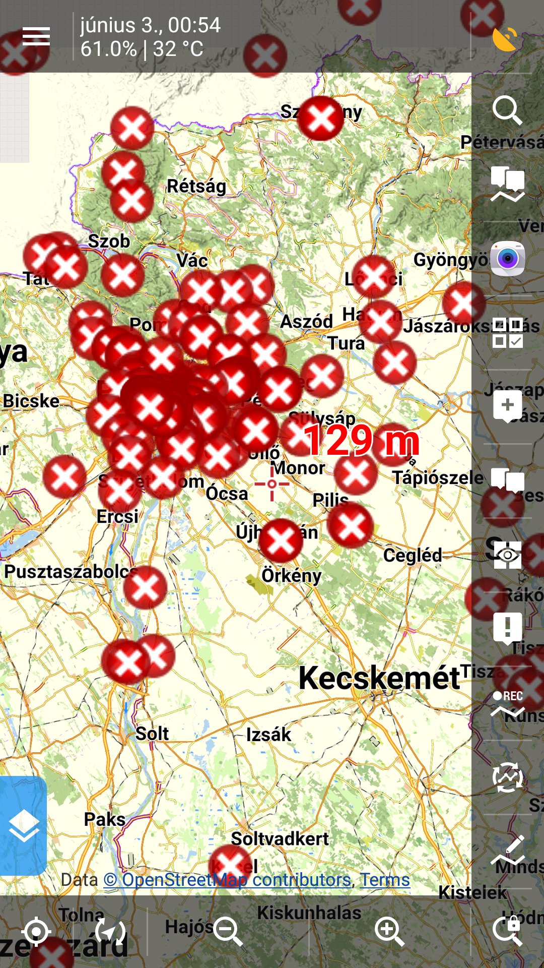 - click down left blue button in map view