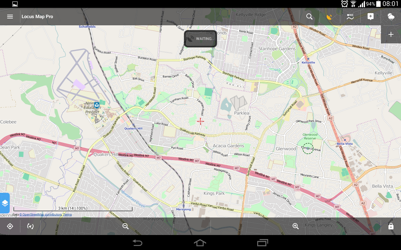 But your Android seems to have troubles to get GPS fix, as Locus asks for the GPs location the Android location service. Some devices are know to have GPS troubles.