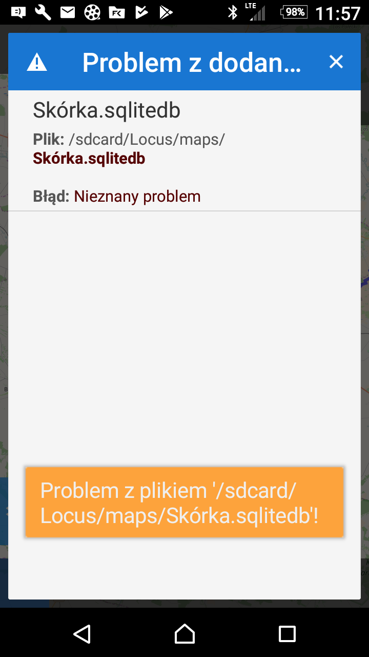 I need your support concerning the problem with my Loc-application. After a reinstallation the system shows such alert as it is seen on the picture to be attached. Additionally, the communication with the ANT devices start to be problematic e.g. when I want to record the track, system is looking for all possible ANT devices and as an effect the mobile is crashed - I can do nothing with the phone (SONY XPERIA ZC compact). Another reinstallation doesn't change the situation.