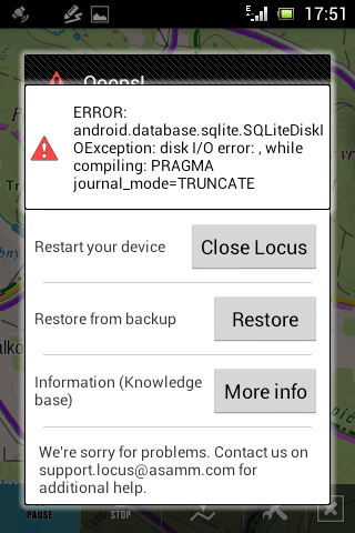 @myneur: I`m almost sure, that your problem has something to do with problem of SD card. These SQLite errors are quite rare, but mostly happen when there is some corruption on SD card. So I suggest to check it with some tool (like in windows etc.)