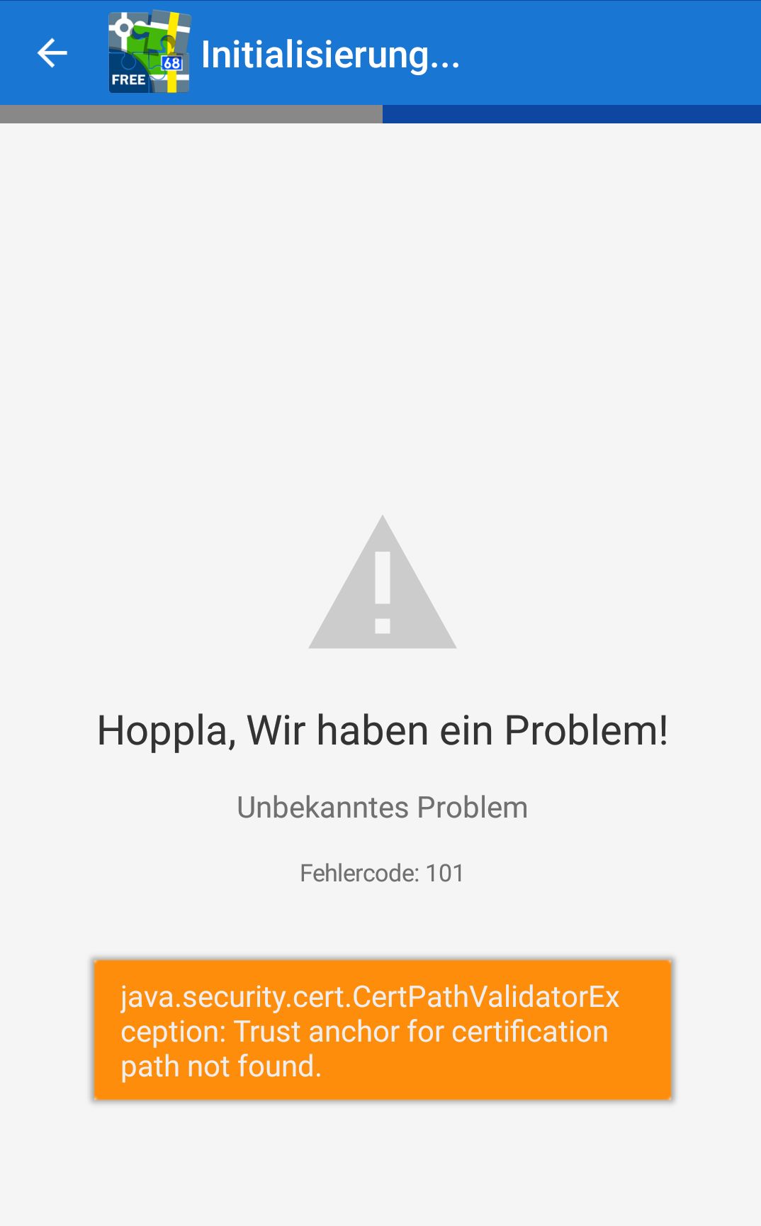 After setting rights, during the initialisation following error occurs: java.security.cert.certpathvalidatorexception trust anchor for certification path not found