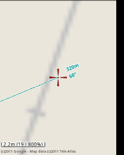Hi Menion, thanks for explanation, so the dashed line is a feature ;-) But -- why the line should be 5000 pixels long? It should be easy to compute intersection of the line with screen rectangle and draw only the visible part when GPS position is out of the display. (Just thinking, I`ve no experience with Android programming.)